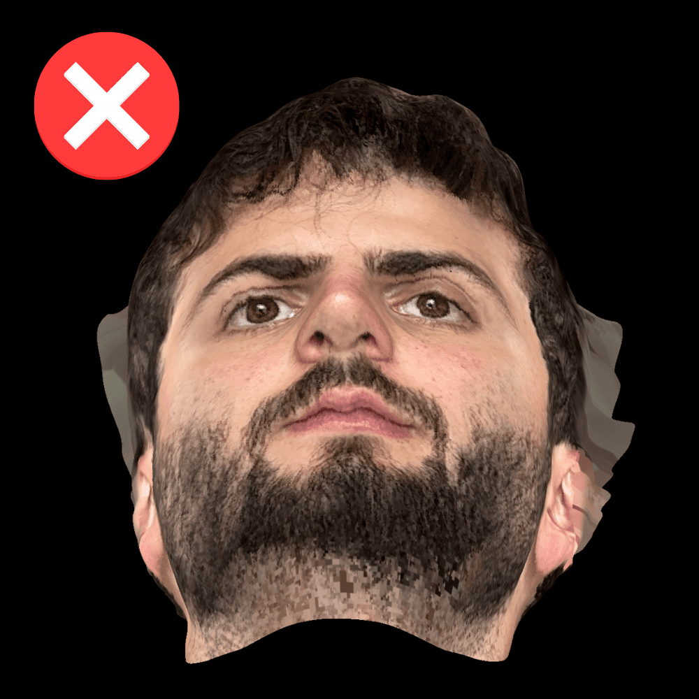 El modelo de tu rostro se movio y quedo volteado hacia arriba.