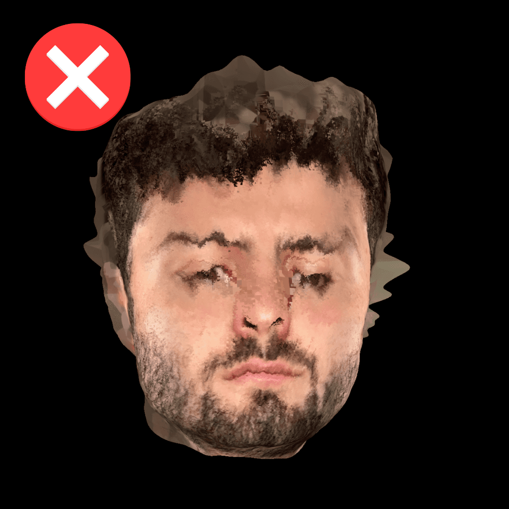 Si el escaneo solo detecta un lado de tu cara puede ser que no estes en un lugar con buena iluminación para ambos lados, o que hayas perdido el foco de tu rostro en medio del proceso de escaneo.